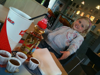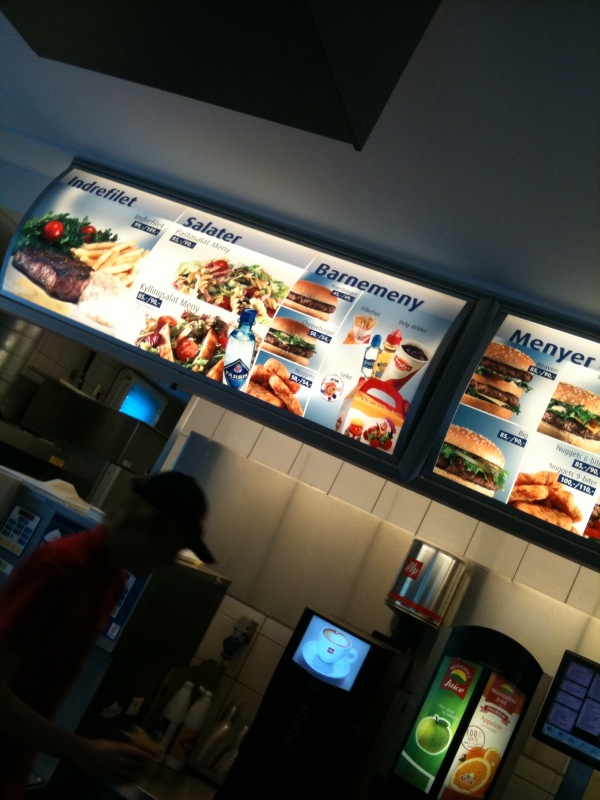 Her må jeg dele en kort refleksjon. Kan jeg blogge om slikt? Det er ikke akkurat «rocket science» å kjøre til en fastfood kjede, det er ikke imponerende mat-politisk, det smaker ikke vidunderlig, det krymper egoet mitt – ja, det oppleves som en øvelse i ydmykhet, det er ikke næringsrikt, det gir ungene dårlige vaner, man blir tjukk av det, det er ikke i tråd med min hang til slow food, de som jobber der er underbetalt, toalettene er ufreshe…osv…osv. Men det er sant – jeg driver med slikt. Jeg liker fast food (også). Fett, kjøtt, smelta ost, ketchup, mengder salt, milkshake & eplepai – alt klæsja ned i plastbeger og ekkelt papir. Og derfor blogger jeg om det. Jeg er ikke stolt av det, emn jeg står for det. Museflettene elsker at vi skeier ut og er litt gærne.