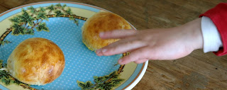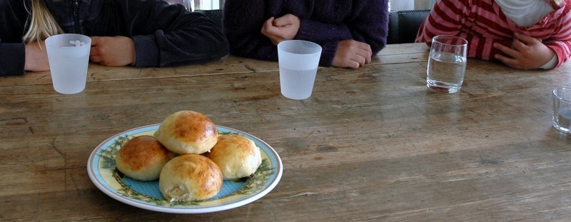 Nå kommer snart museflettene hjem fra søndagsskolen – og jeg vet fra da jeg var liten, at følelsen som lukten av nybakte boller gir en god søndagsfølelse! Musefletter kommer sjeldent alene, ei heller i dag. Nabo-flettene kom etter lukta og vips var bollene borte.