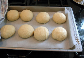 La deigen stå lunt for heving i 40-50 minutter.Del deigen i passe biter, rull bollene og legg på brett. La bollene etterheve til de nesten er doblet i størrelse.