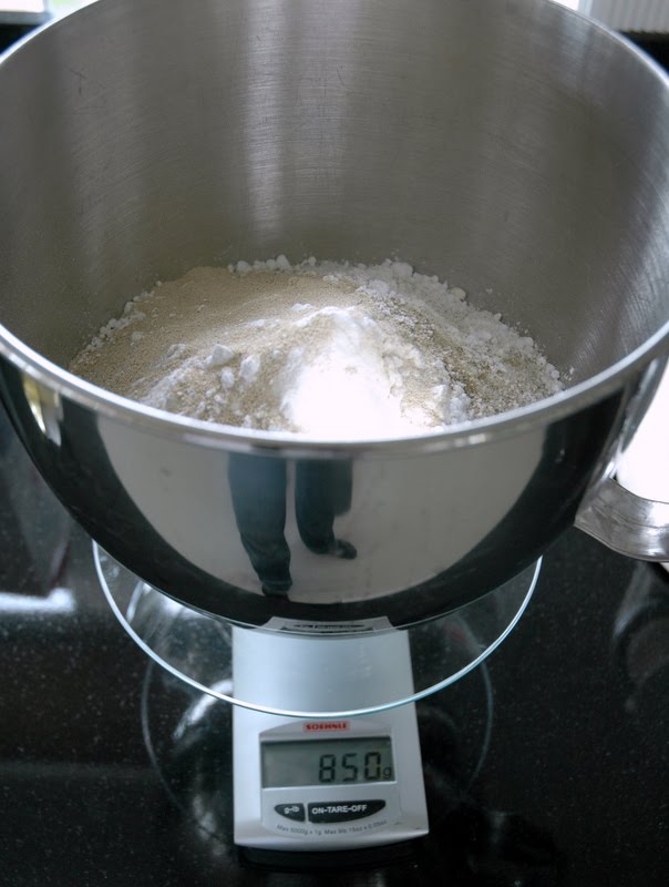 Bland melet og de andre tørre ingrediensene – inkludert gjæren. Jeg bruker tørrgær for søte deiger. Ha det tørre i det våte. Elt passe godt. Pass på at deigen har en klebrig og litt løs konsistens. Da vil bollene bli luftige og fine. For hard deig fører til boller med peppernøtter konsistens – ikke bra!