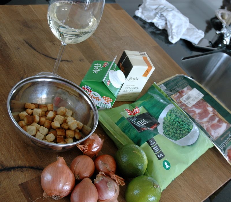 Det er mandag. Dagen hvor det er mulighet for å starte på nytt! Etter en helg med mye karbohydrater tenkte jeg at det ville være godt med noe sunt og grønt – derfor ertesuppe. Pose-supper er jeg ikke negativ til. De kan lett løftes til nye høyder. Men ertesuppe er så enkelt, og så mye bedre, at det bør man lage fra bunnen av. Dette trenger du – ca (store)4 porsjoner: