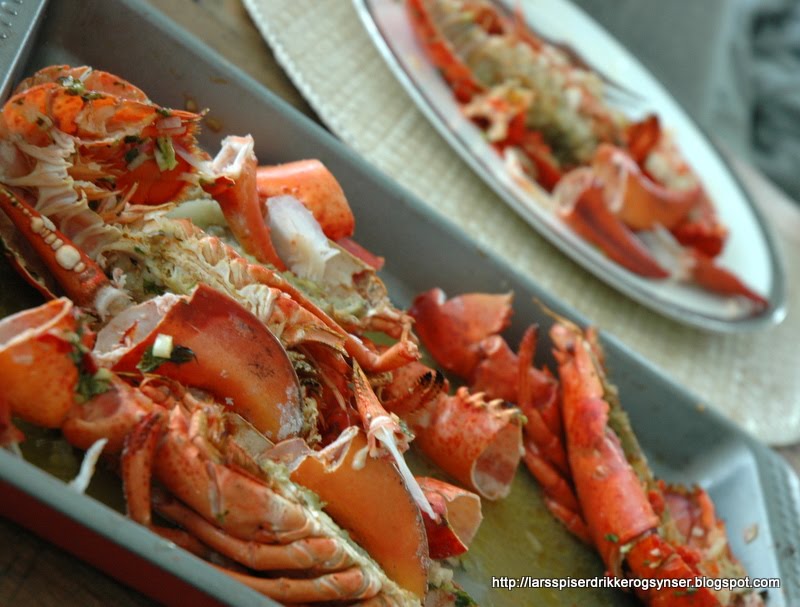 Uansett så var det å la pølsene hvile, og lage hummer til oss to istedet ingen klein løsning. Jeg spiser gjerne hummer med Fruen.