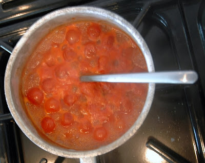 Ha olje, sukker og tabasco i en liten gryte. Det som skjer her at hvitløken får en «hot karamelisering» som gir sausen en ekstra spiss og sødme. Ha i tomatene og kok i 15 minutter. Smak til med salt & pepper. ha i en liten neve med frisk, revet basilikum