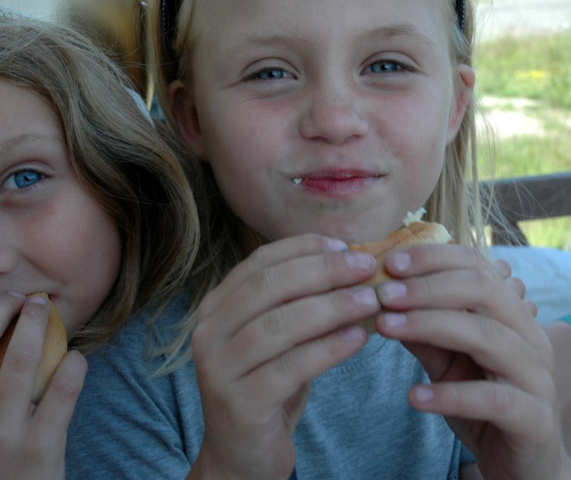 Dette er jo ikke akkurat museflettemat. Dessuten er det umulig å få musefletten til bordet når det er sommer i lufta. Derfor ble det en liten buffet på det som skal bli terrasse.Ryktet spredte seg raskt i museflettekretsene, og vips var det en gjeng – sweet!