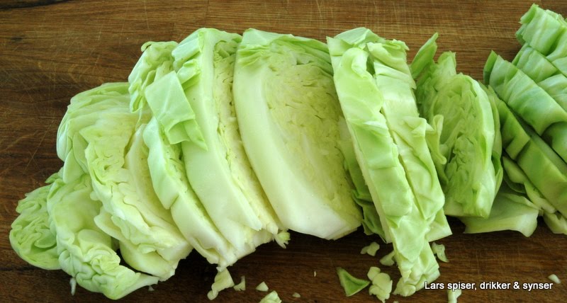Når du har renset den skjærer du den opp i fingertykke strimer. Kålen skal sauteres (les; stekes i smør) i varm panne med mengder smør og maldonsalt. Kålen skal bli smørt av smøret og ha mye crisphet igjen. Noen dåper sitronsaft over det hele mot slutten gir nykålen et lite løft, og funker fint som ballanse mot smør & salt.
