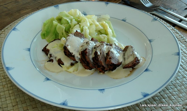 grillet fårefilet, gorgonzola-saus & sautert nykål