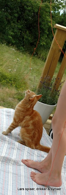 Det er mandag og jeg har ferie igjen. Museflettene har funnet en hjemløs sommervenn, pusen «Pølsa» og har puttet den ned i en dukkevogn. (Navnet pølsa kommer av at museflettene har foret dyret (i hemmelighet) med grillpølser i et par uker…)