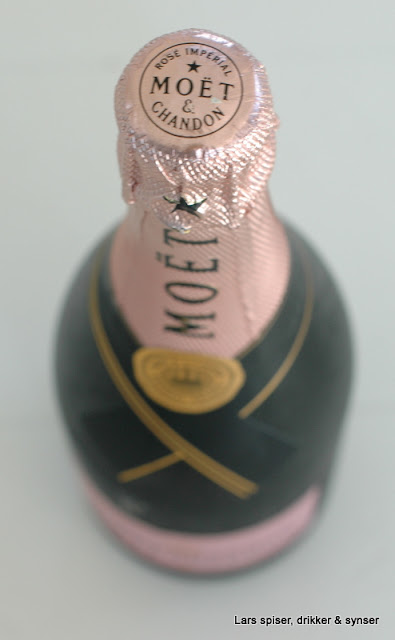 Hva drikker man til slikt? Til vanlig ville jeg valgt en Sancerre til salaten og en tørr Riesling, f.eks. Calle`s riesling til den asiatiske laksen – Link til Calle & Vinmonopolet – Men dette er ikke til vanlig. Vi feirer jo Fruen, derfor blir det Champagne – rosé imperial fra Moet Chandon.