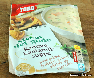 Suppepose – Toro, kremet kantarell-suppe. Folg anvisningen på posen.