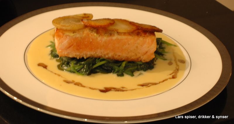 Fruen og jeg elsket maten. Det hører med at jeg hadde spist hva som helst i går, men denne retten vil jeg lage igjen. Fet fisk, syrefrisk, men avrundet saus og herlig spinat. Sjekk den ut selv!