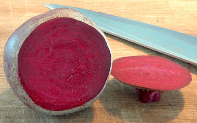 På gårsdagens butikkrunde bugnet det av ferske rødbeter i hyllene. Fargen og den litt jordaktige smaken passer perfekt til denne retten, så jeg tok med meg en bunt hjem. Skrell 1 rødbet og skjær den i små staver som du har opp i bollen sammen med salaten.