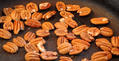 Det eneste du skal gjøre med nøttene er å riste dem i en tørr, varm panne noen minutter. Pass på – nøttene skal ristes, ikke brennes.