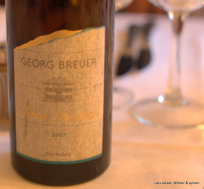 Jeg gleder meg sykt til aftenes viner. Jeg har drukket alt fra de tørre, syrefriske, mineralske med petroleumsduft og søte, fantastiske auslese viner fra Breuer tidligere, f.eks Breuer Berg Roseneck Riesling Auslese Goldkapsel 2007