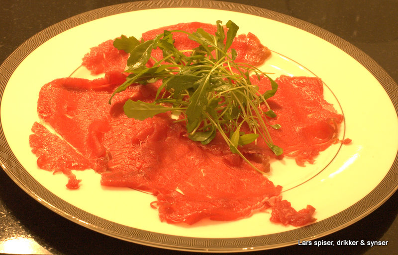 Til okse-carpaccio synes jeg det passer med sorte oliven – for eksempel de marinerte du du får kjøpt på «asia-butikken», soltørket tomat, rucola, parmesan og god olivenolje. Salt, sort pepper og noen dråper sitronsaft hører med.