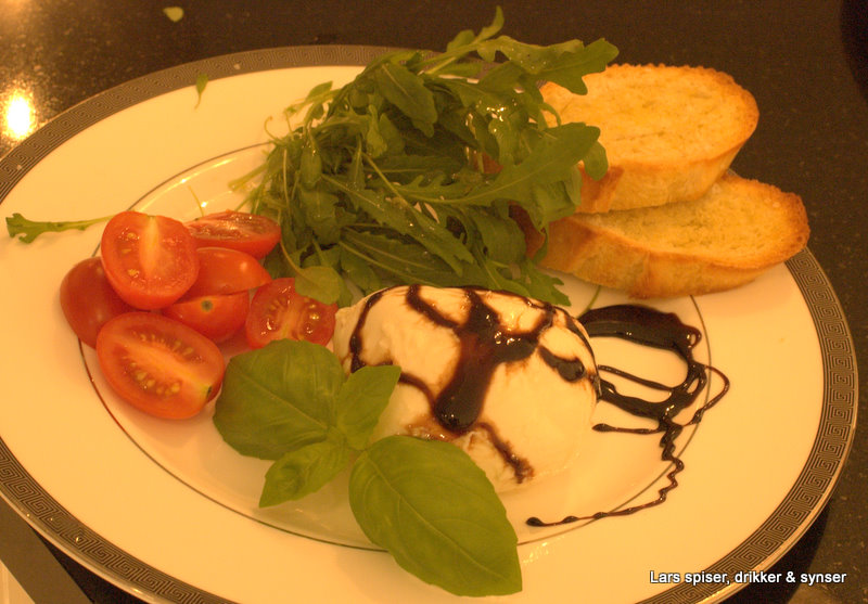 Jeg hater å lage sunn mat, bare for at det skal være sunt. Det kommer ikke til å skje. Jeg ser at folk putter i seg det en uspiselige etter det andre i håp om å ende på catwalken. Jeg lager god mat og det er et pre hvis den er sunn. Fruen ønsket noe low-carb, jeg trang det! Det endte opp med to småretter på bordet – Carpaccio av okse og en caprese. Begge to tar ca 5 minutter å lage og smaker supert. Rettene dekker også behovet for mumse-opplevelse, og det er alltid viktig!