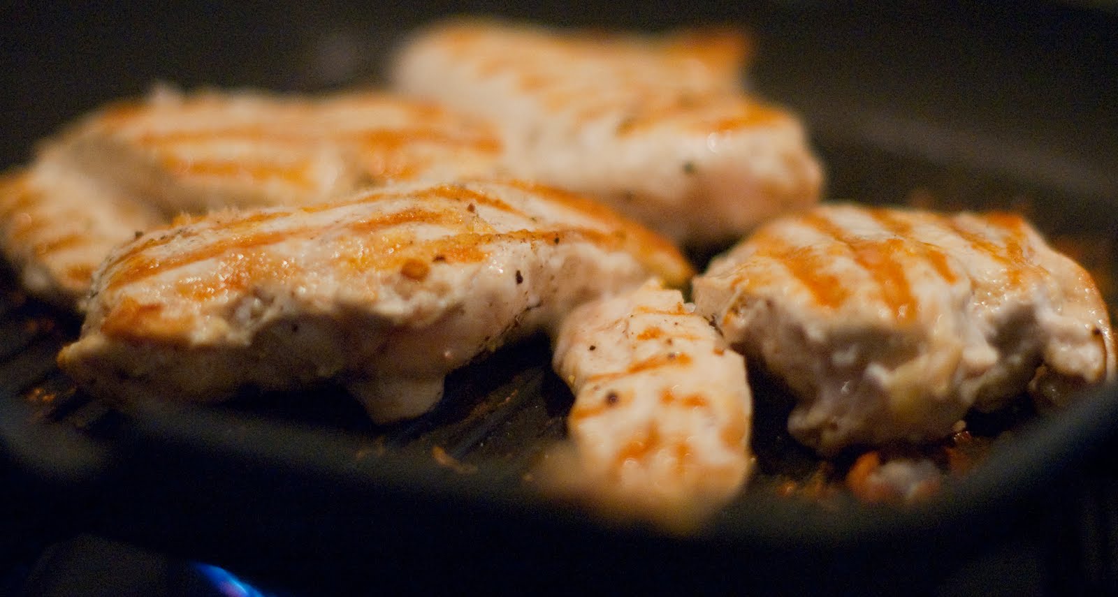 Kyllingen steker jeg i en grillpanne. Salt & sort pepper