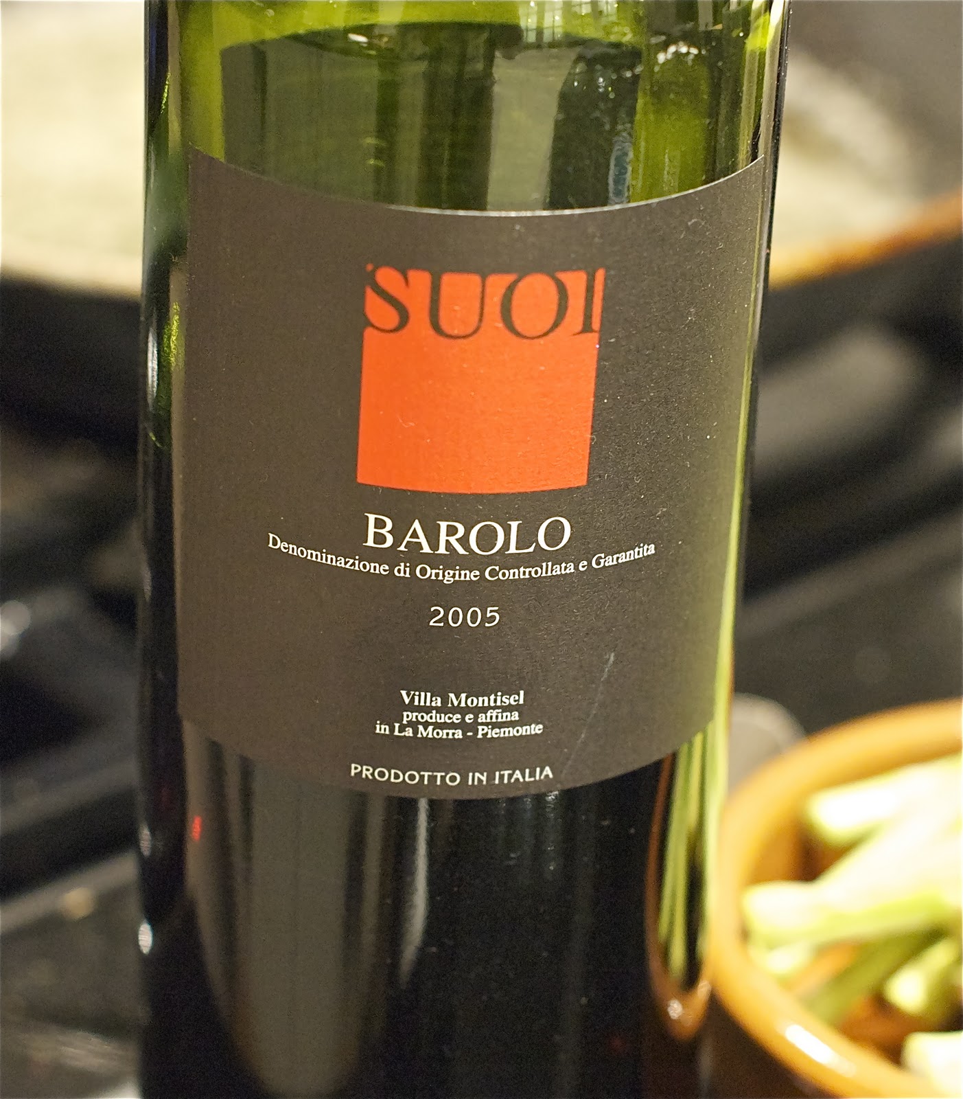 Til dette hadde vi en italiener jeg traff på Taxfree`n på Gardermoen i glasset. Nærmere bestemt en SUOI 2005, Barolo fra Piemonte med ganske kraftige tanniner, røde bær og krydder. En herlig match til denne kraftige kjøttretten.