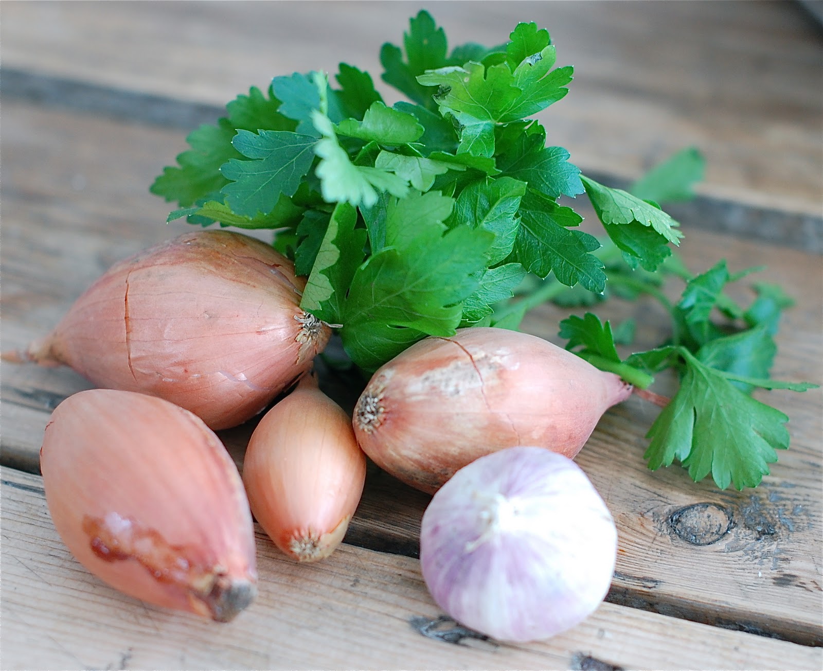 Bland sammen 2 ss soyasaus, 3 sjalottløk, 2 fedd hvitløk, 4 ss ribbesjy og en neve hakket bladpersille i en gryte.