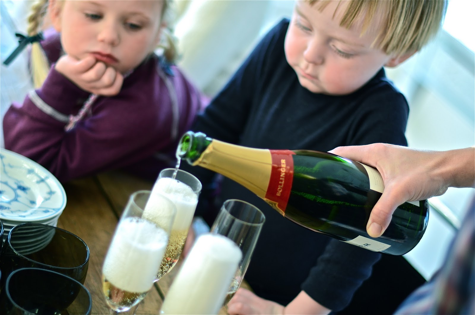 Fruen & jeg er velsignet med de beste venner. Disse vennene har også etterhvert flyttet inn i nabohuset. Kommunalsjefen, Kona & Kubben og de to eldre søskenene er de fineste folka. Og i dag kom hele gjengen innom på kaffe & julebakst på vei til akebakken. Siden vi har mengder av grunner til å feire, og siden jeg har vært i taxfree`n «100» ganger før jul, slo vi oss løs med Champagne til småkakene. Og som alltid – champagne blir aldri feil!