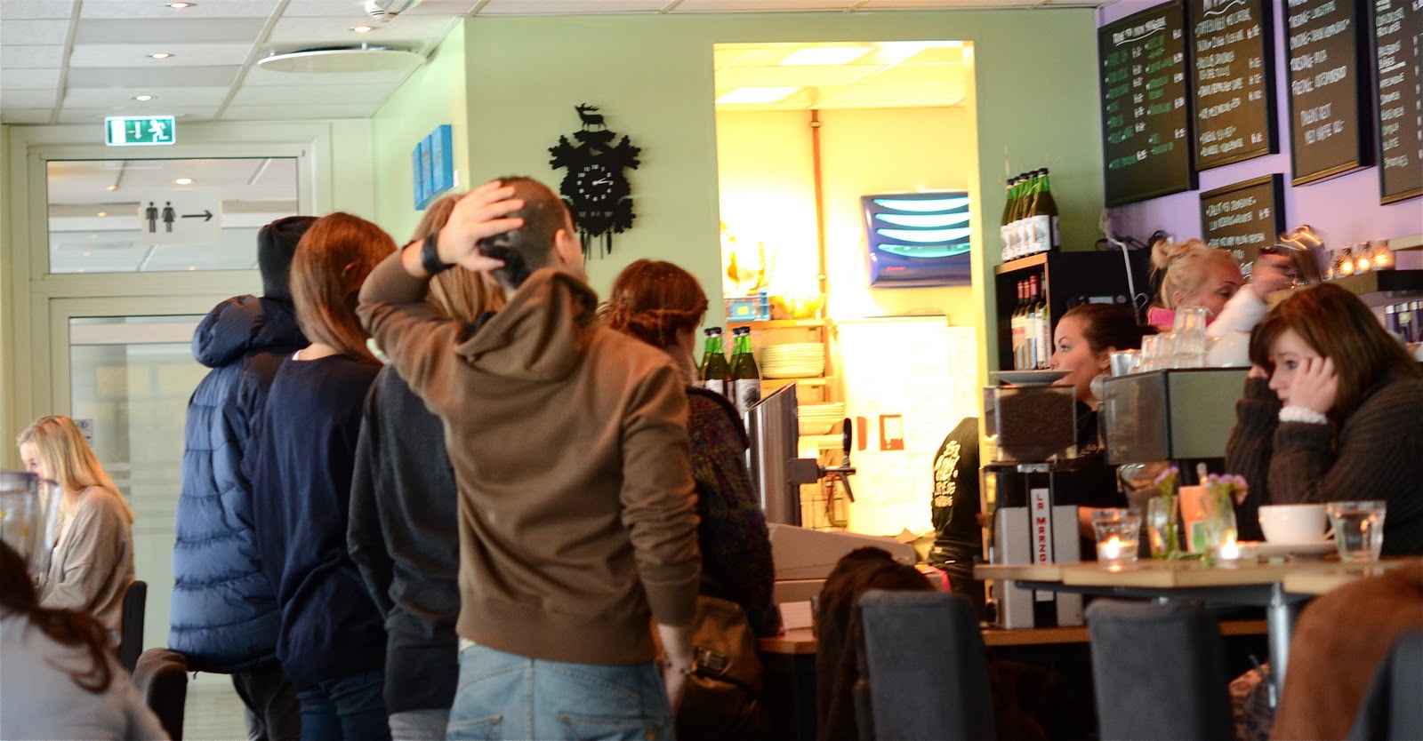 De to timene vi satt på Tullis var det en gjevn strøm av kunder. Godt voksne damer med en kopp te, småbarnsforeldre som spiste lunsj og ungdommer som surfet på nettet. Betjeningen var vennlige, og holdt fin orden på bord og i disken.