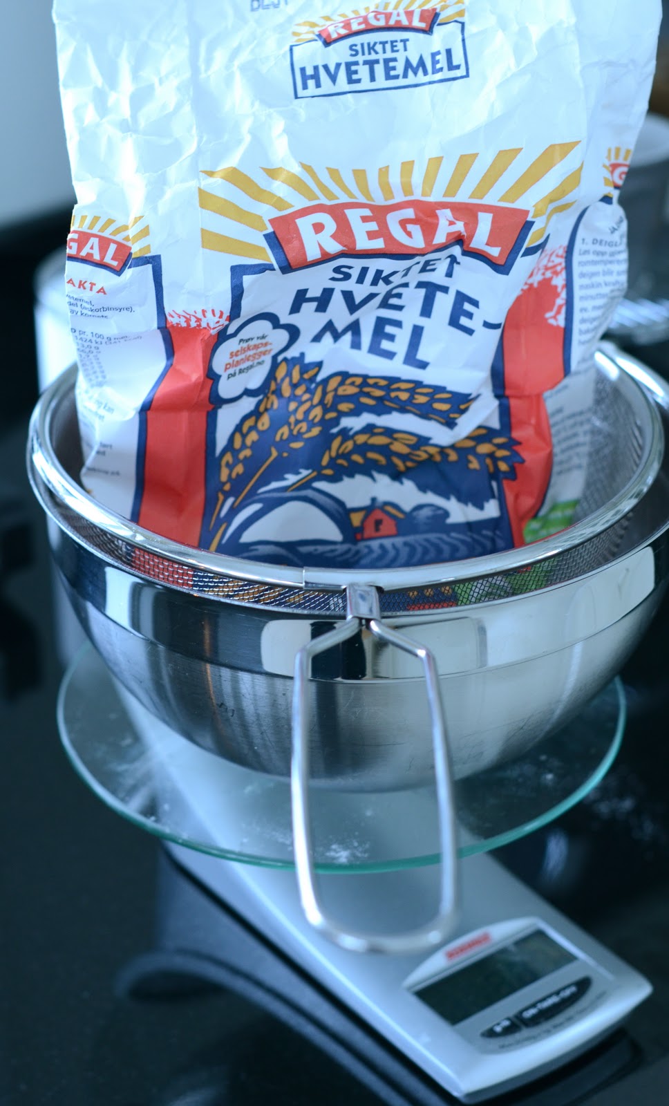 Kok opp 2,5 dl melk og 60 gram godt smør. Sikt 40 gram hvetemel og visp det inn i massen til den er glatt og fin.