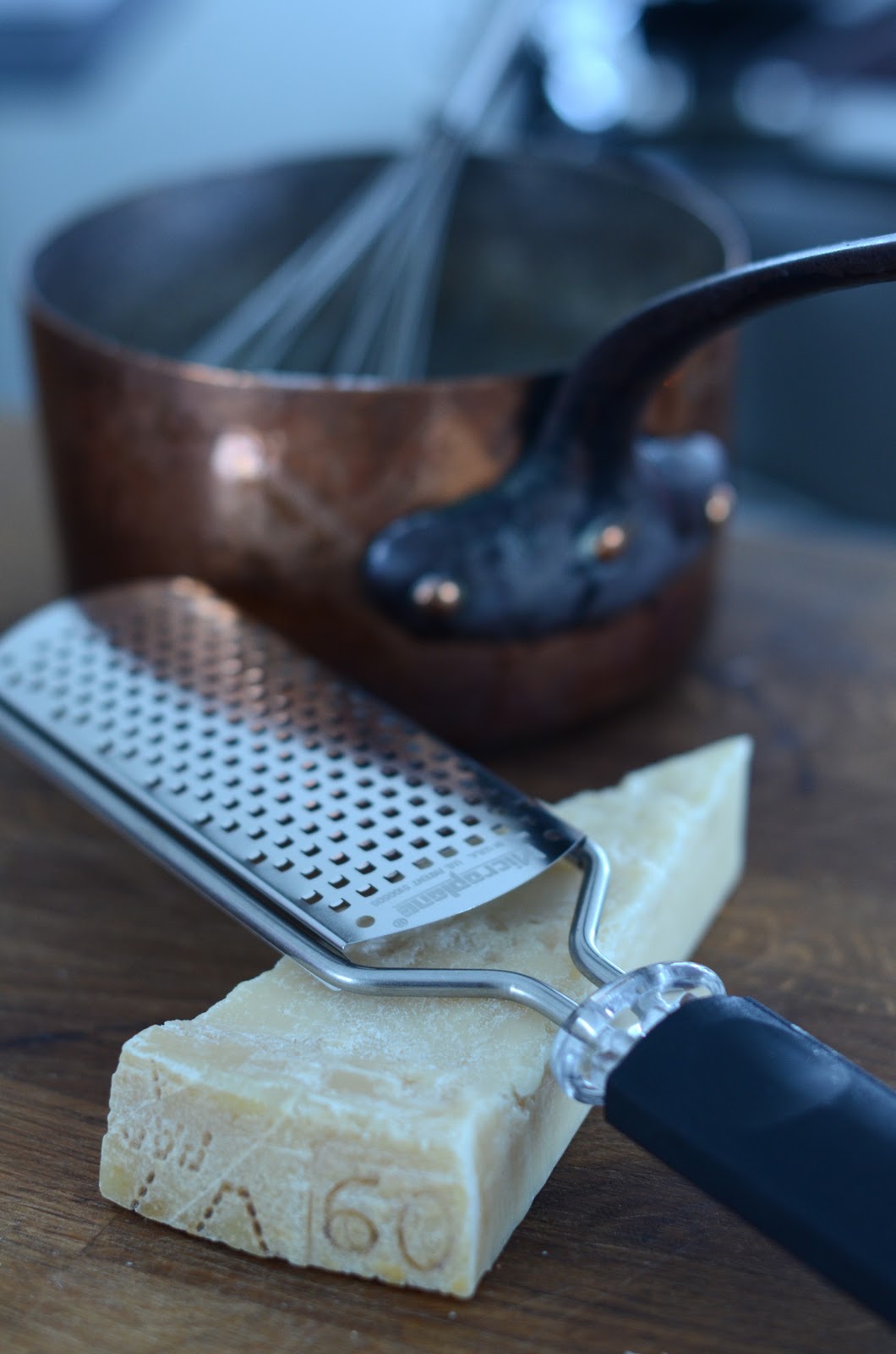 Pisk 1 egg, 1 dl fløte, en liten neve revet parmesan sammen i en bolle.