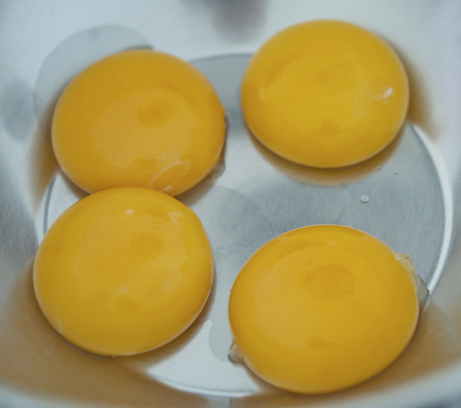 Ta gryta av varmen og tilsett 2-3 ss kaldt vann og 4 eggeplommer.