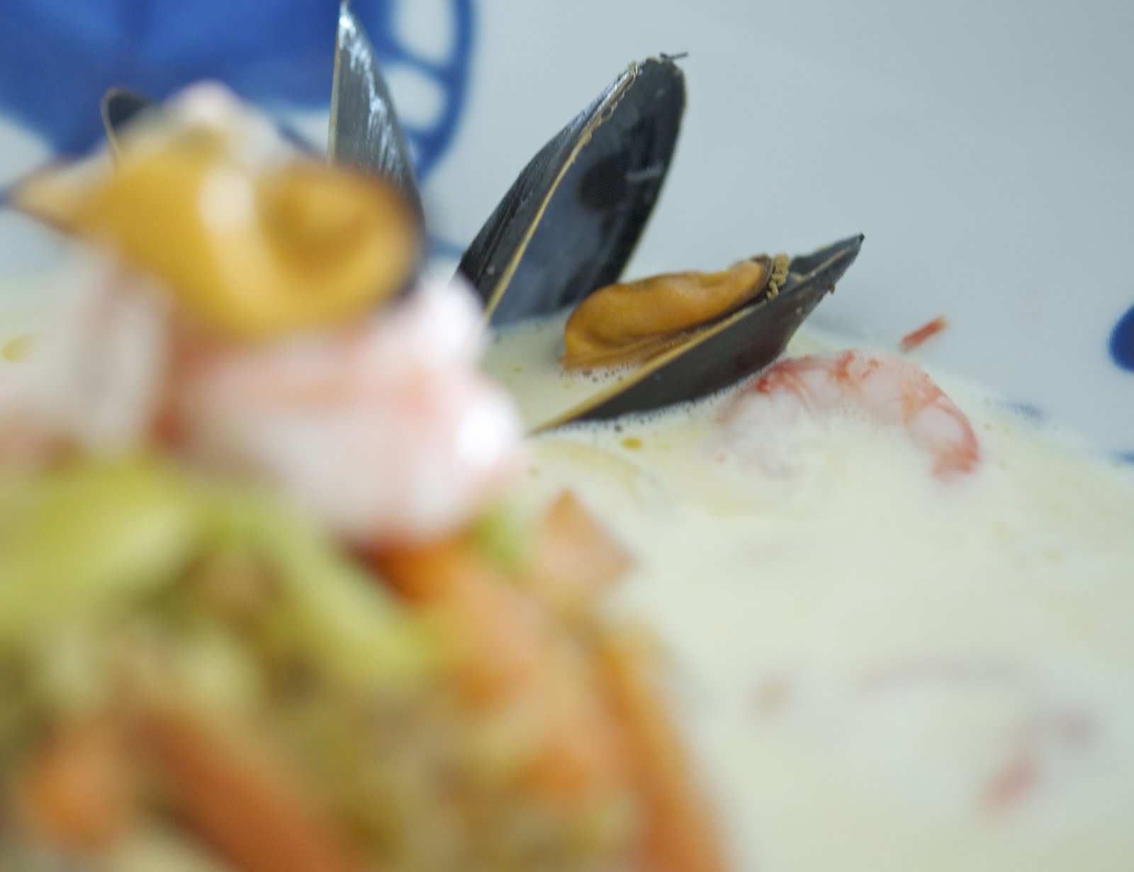 I følge mine to små Musefletter er den ekleste og simpleste råvaren jeg styrer med på kjøkkenet blåskjell, eller ”krabbemat” som det heter hjemme hos oss etter flere sommere med fiske av strandkrabber i fjæresteinene. Blåskjell er så mye mer enn de litt slitne hermetiserte ”gummi-klumpene” som kommer på pizza`n fra Peppes. Det er en råvare du kan ”plukke” selv – bare sjekk om det er tid for skjell i ditt distrikt før du putter dem i gryta. Jeg plukket som vanlig mitt nett med blåskjell i fiskedisken på Meny – det er begrenset hva en stresset alenefar får til mellom jobb, barnebursdag og avslutning på dansingen til Museflettene.