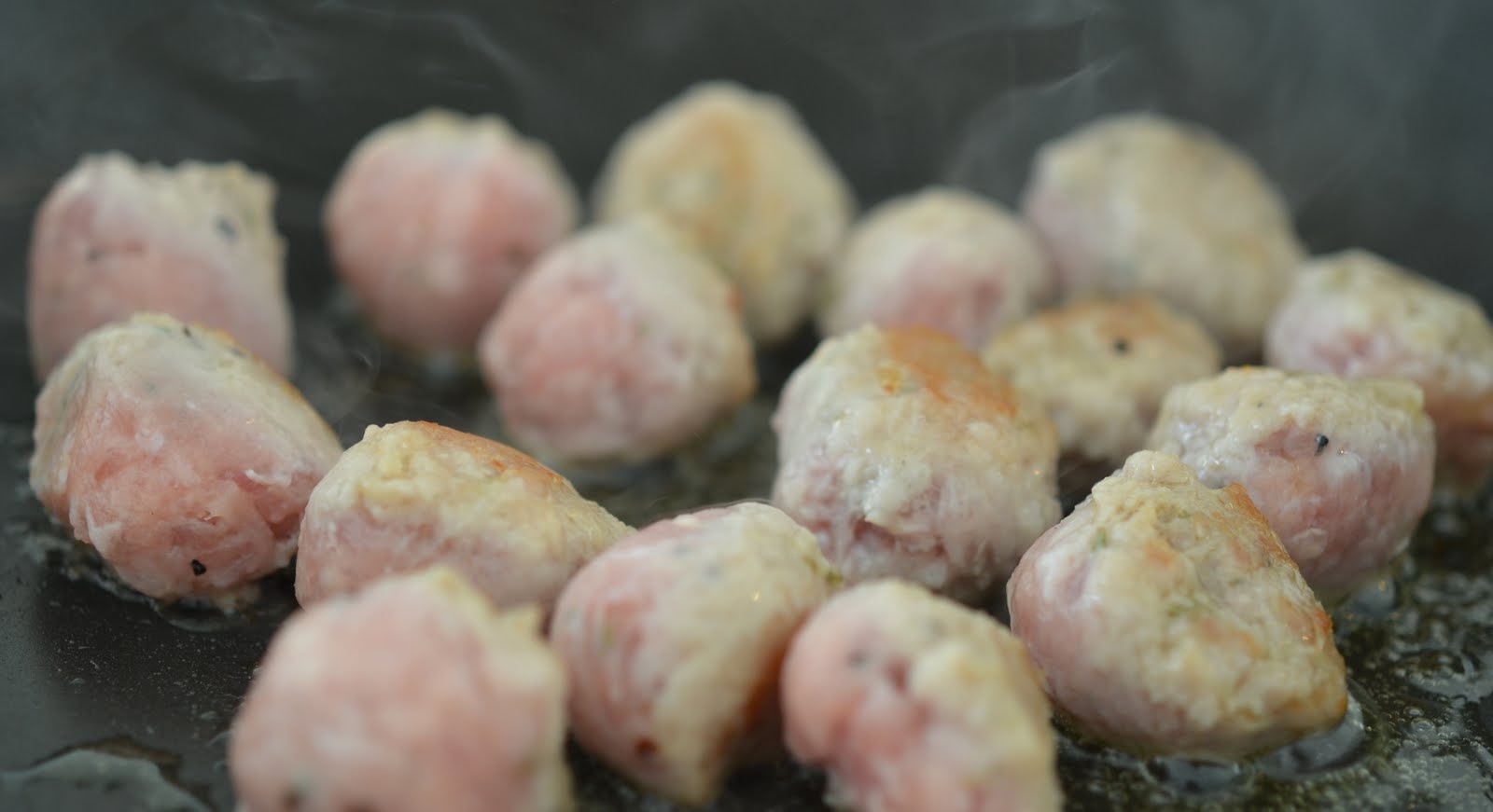 Stek kjøttbollene i litt god olivenolje samen med baconet og 2 fedd finhakket hvitløk. Når kjøttbolleneer gjennomstekt drar du panna til side og holder det varmt til det skal brukes.