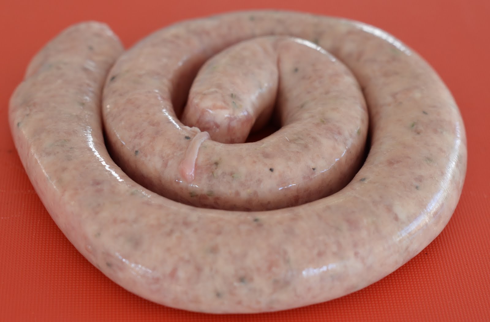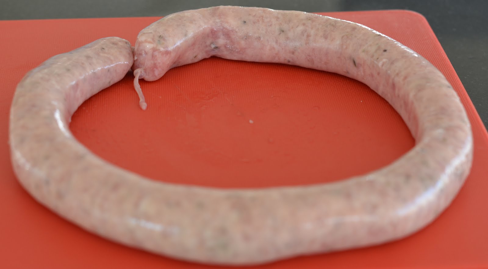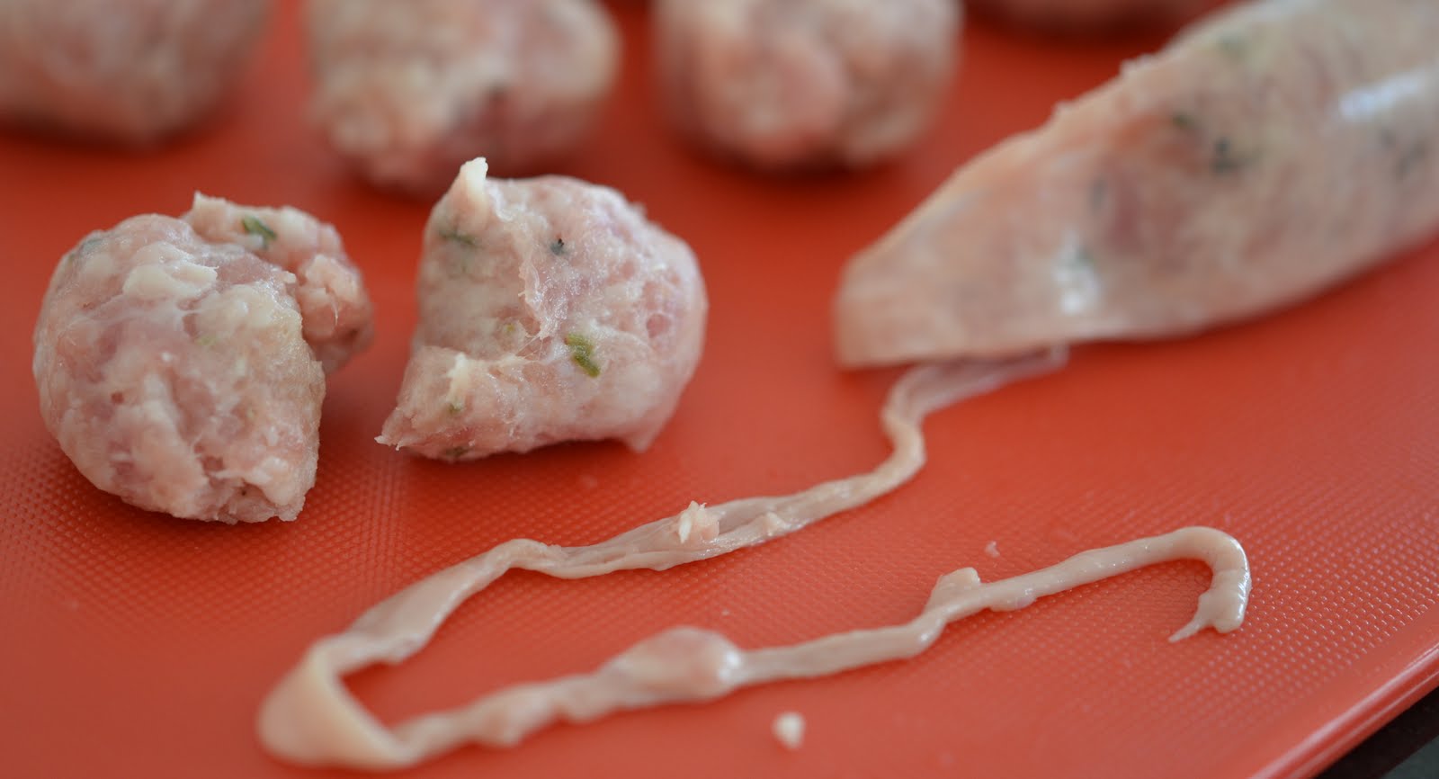 Lag et snitt i tarmen, ta ut 2 cm pølsekjøtt og form det til små kjøttboller.