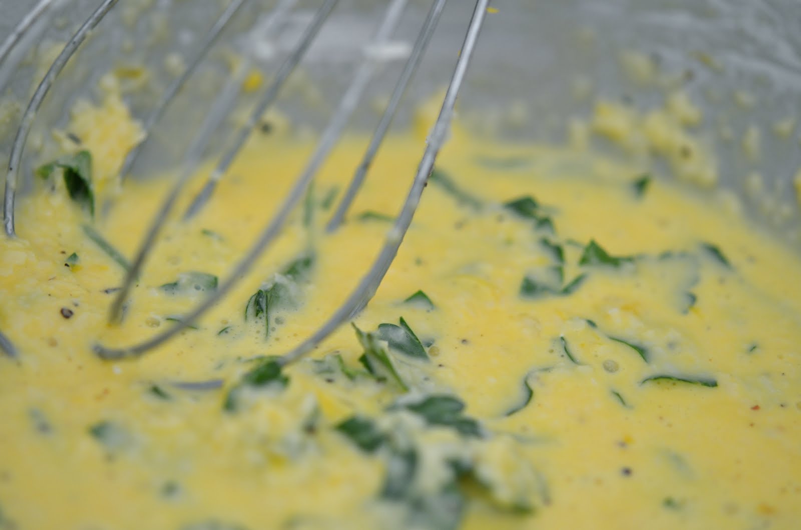 100 gram nyrevet parmesan, en neve finhakket bladpersille, en klype salt, litt nykvernet sort pepper og revet skall av en sitron (kun det gule) i en passe bolle.