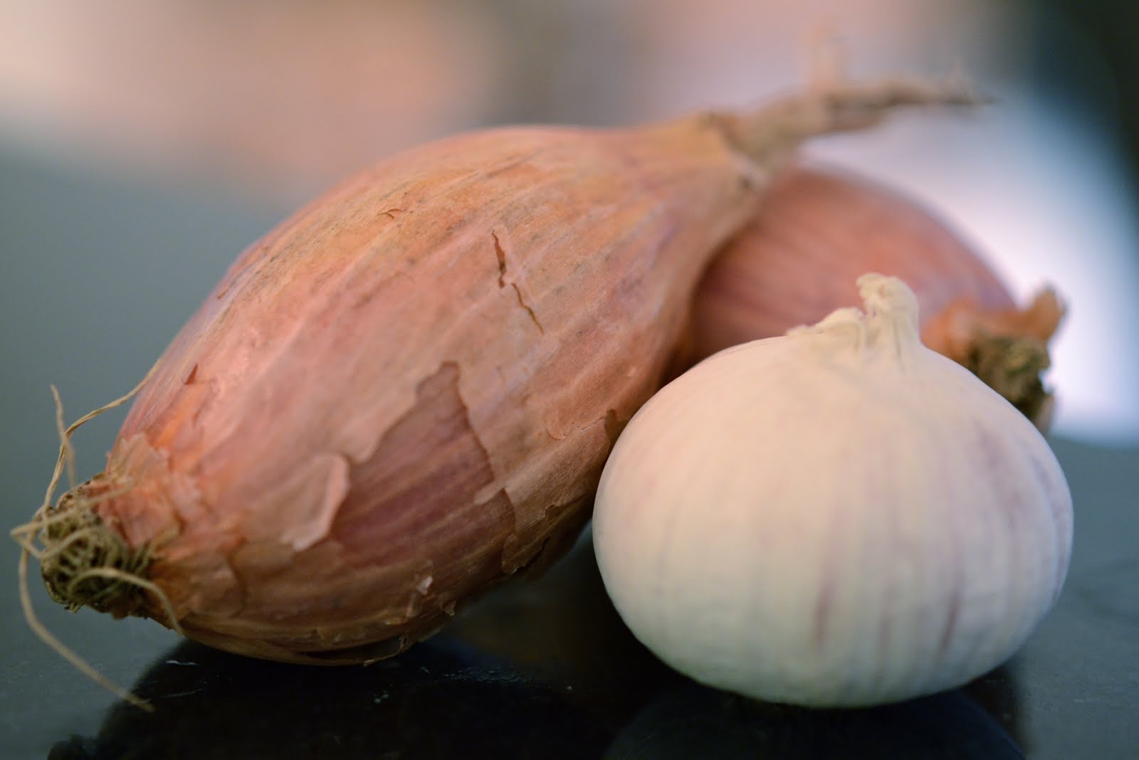 Mens pastaen koker mykner du 2 finhakkede sjalottløk og finhakkede fedd hvitløk i olje.