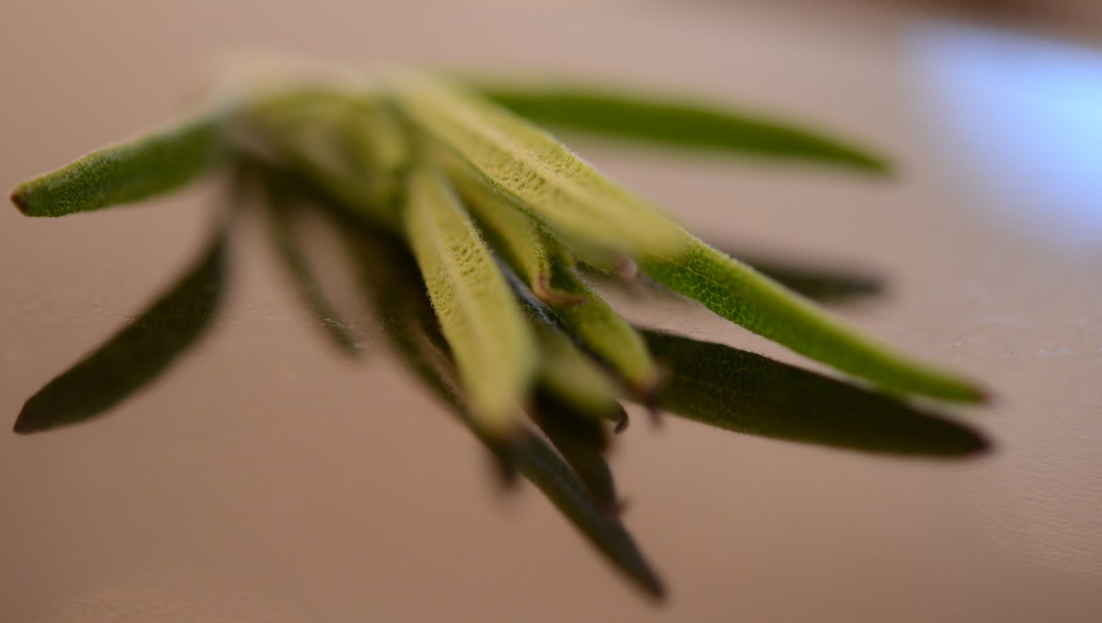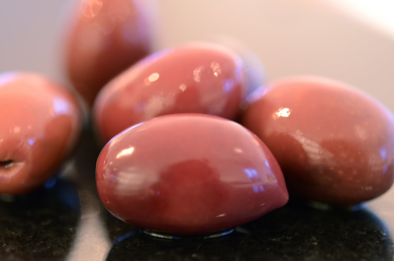 Etter et par minutter har du i 100 gram gode sorte oliven (med stein), 1 ss tomatpuré, en kvist rosmarin og finhakket timian.