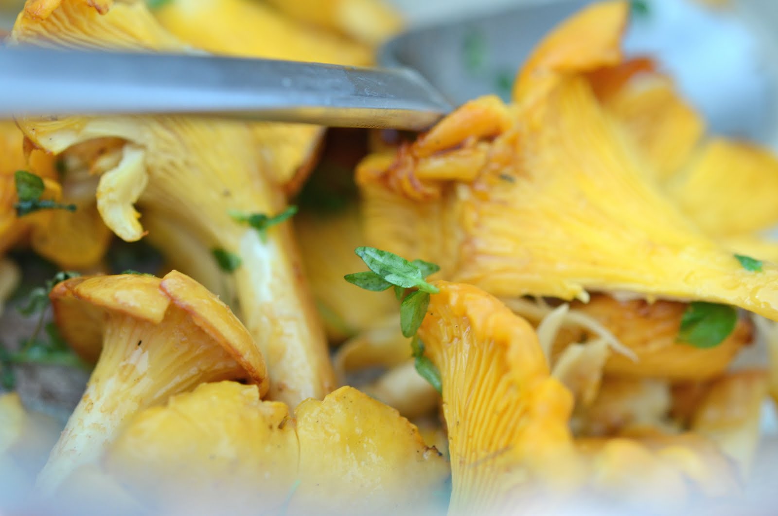 Stek 150 gram kantarell i usaltet smør sammen med en liten neve timian. Smak til med salt og pepper. Sett til side.